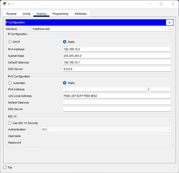 Lakukan setting IP address ke setiap PC sesuai dengan alokasi IP address pada Tabel 1.