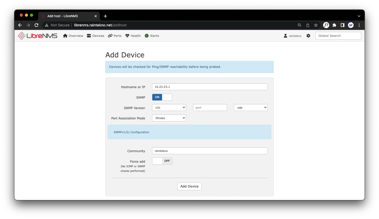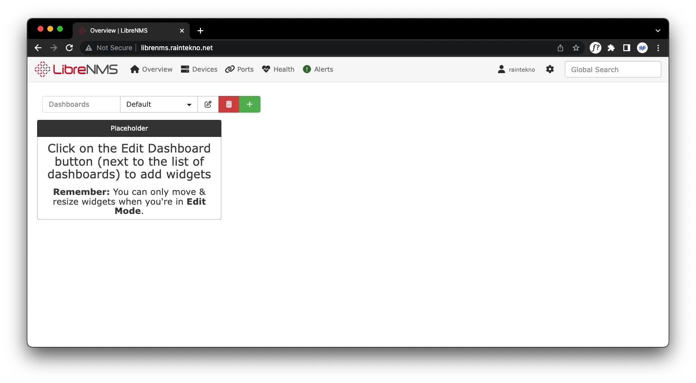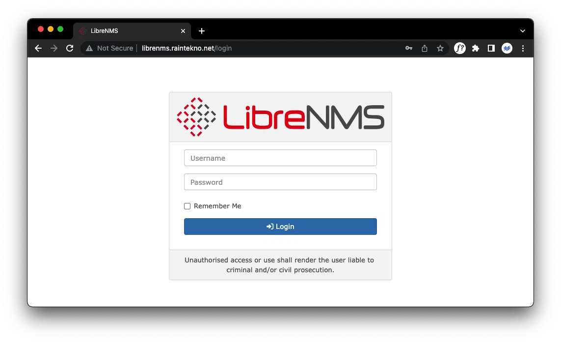 Pada browser komputer klien, ketikan alamat librenms.raintekno.net pada address bar.