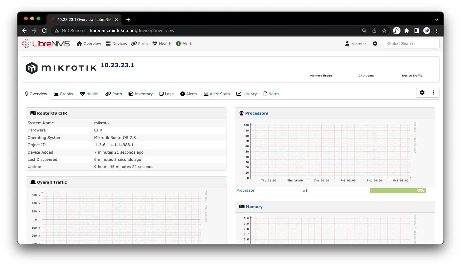 Maka akan muncul tampilan bahwa kita telah menambahkan perangkat Mikrotik pada Librenms.