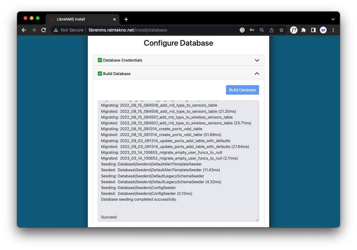 Setelah konfigurasi Credentials berhasil, kemudian klik Build Database.