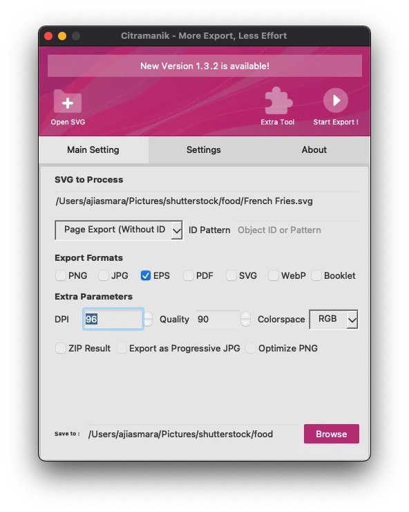 Citramanik can be used to export images or vectors to various formats. In this case, we will export vector on SVG file to eps file.