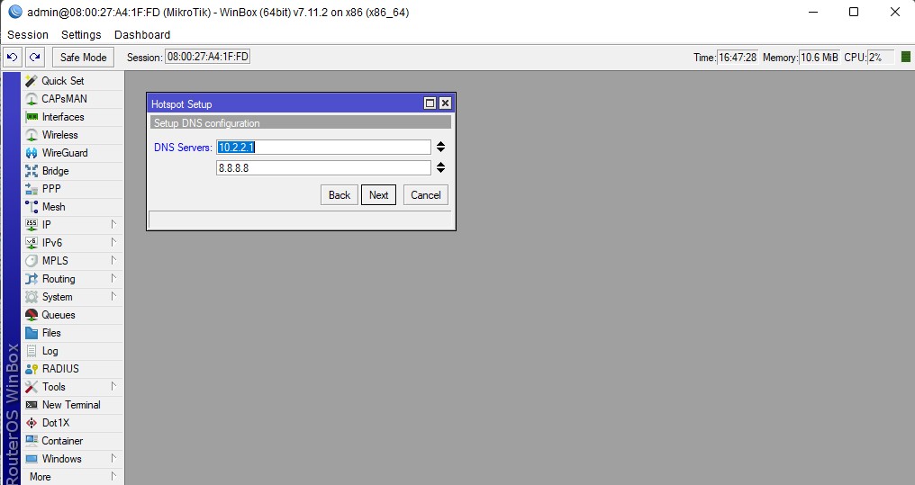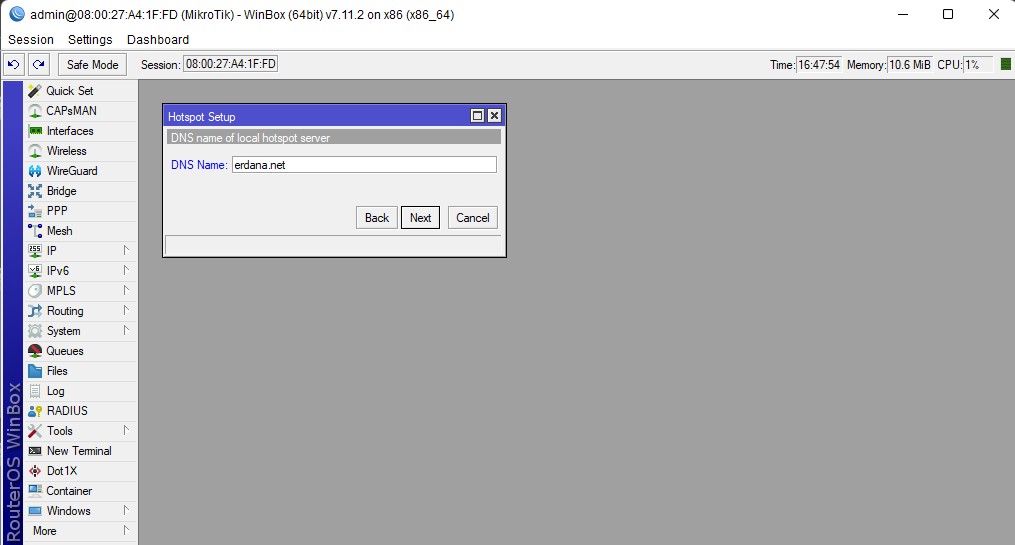 Pastikan alamat IP sudah sesuai dengan Ether2. Klik Next untuk melanjutkan.