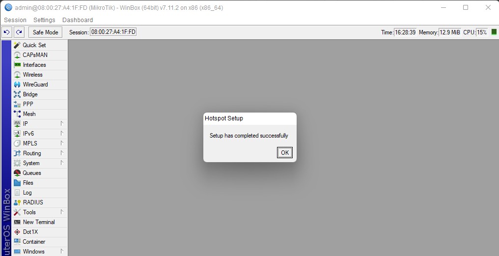 Konfigurasi Hotspot Mikrotik telah selesai dengan muncul popup sebagai berikut.
