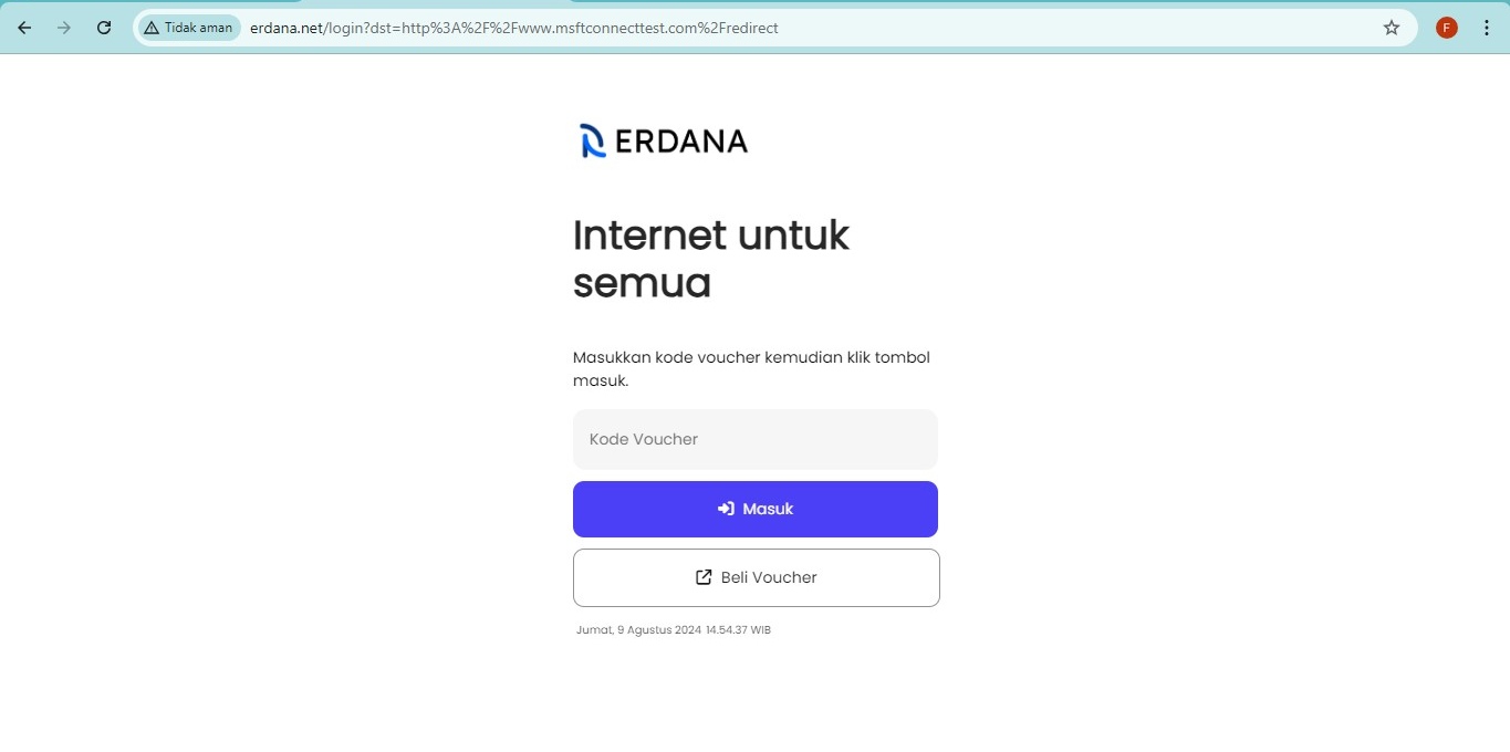 Jika konfigurasi hotspot dan access point sudah benar, akan muncul halaman login untuk masuk ke jaringan hotspot.