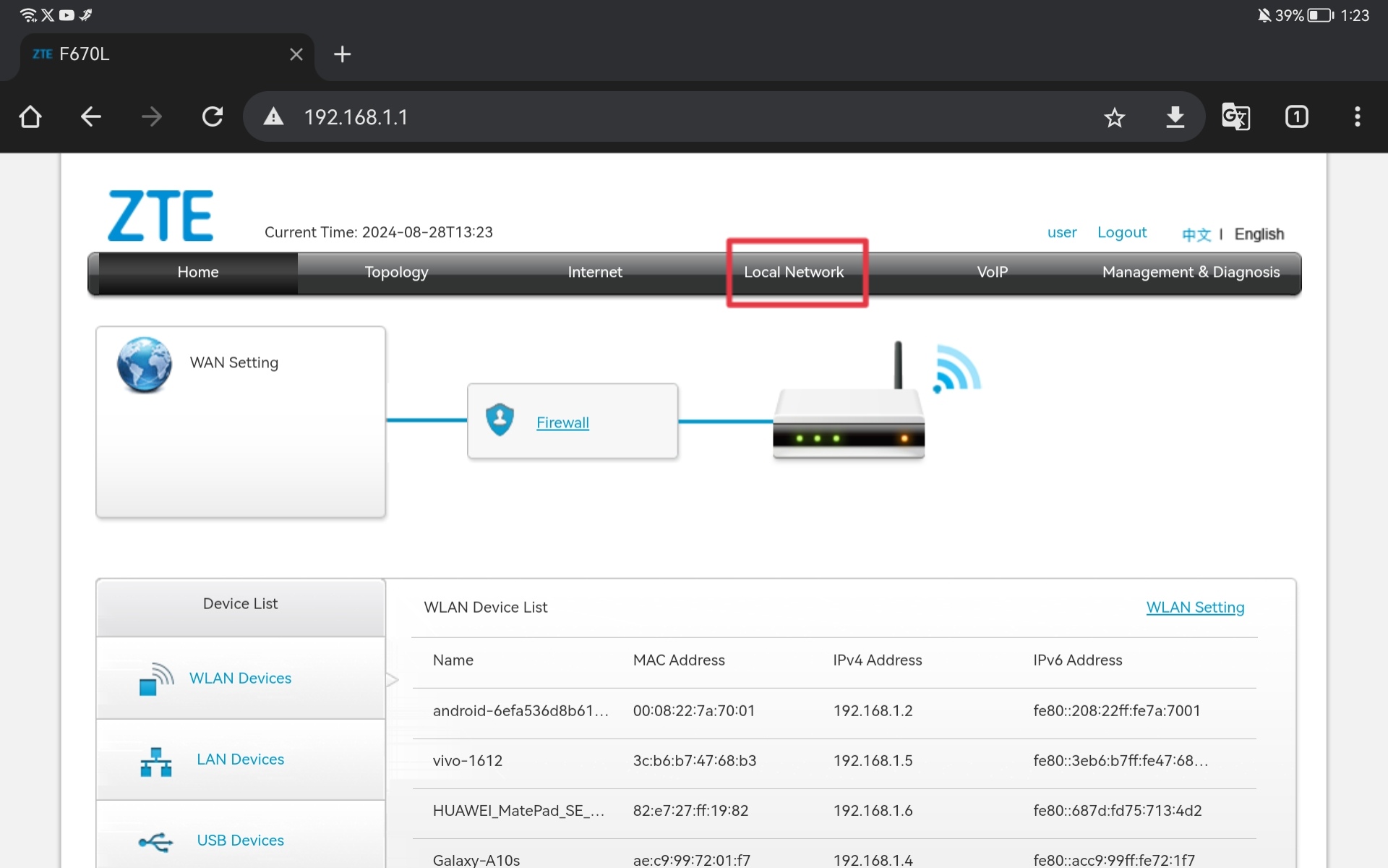 Setelah berhasil masuk, klik menu Local Network.