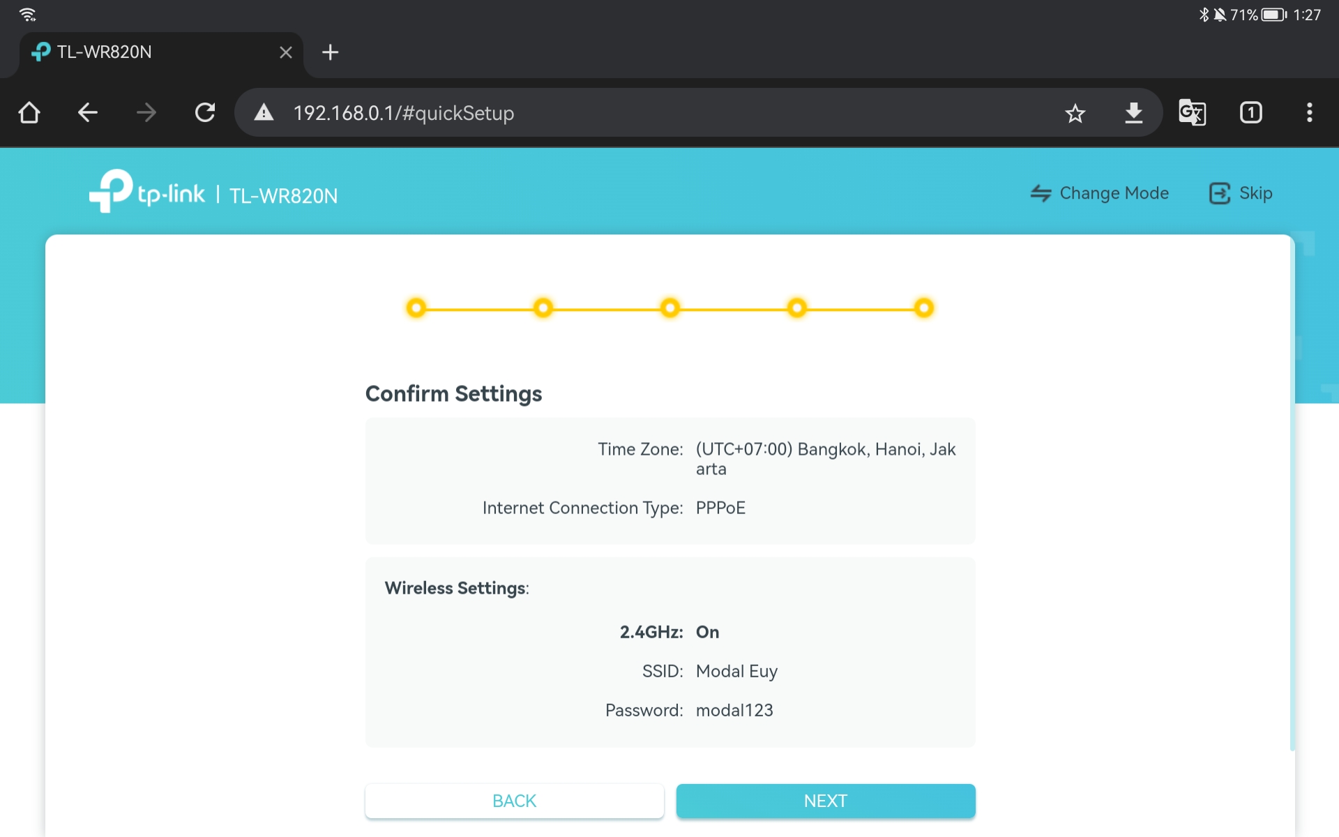 7. Klik Next untuk konfirmasi konfigurasi Access Point yang sudah kita lakukan.